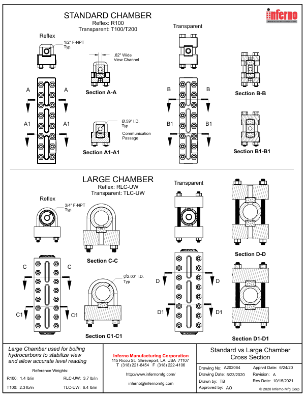 -Reflex and Transparent style with 1/2" NPT end connections in stock (up to 5 sections)