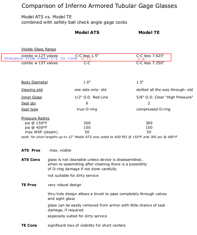 • Transparent gauges with 1/2" end connections, sizes 13-49 in stock (CS)